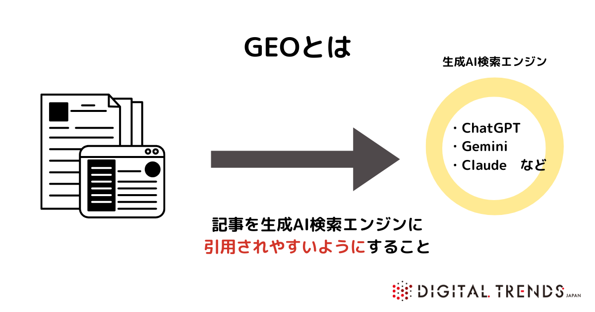 こうした背景から注目を集めているのが、「GEO(生成エンジン最適化)」です。
