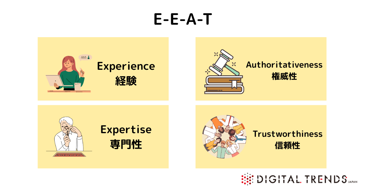 頭文字はそれぞれ、経験・専門性・権威性・信頼性を表しています。