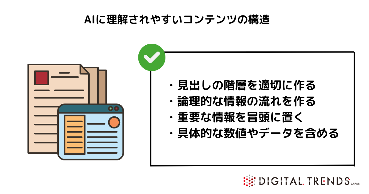 生成AIが引用しやすい構造で、コンテンツを作成することも重要な対策です。
