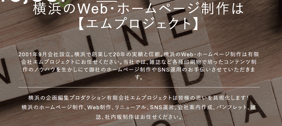 有限会社エムプロジェクトは2001年に設立されたコンテンツマーケティングの会社です。得意なのは、Web・ホームページ制作とSNS運用になります。
