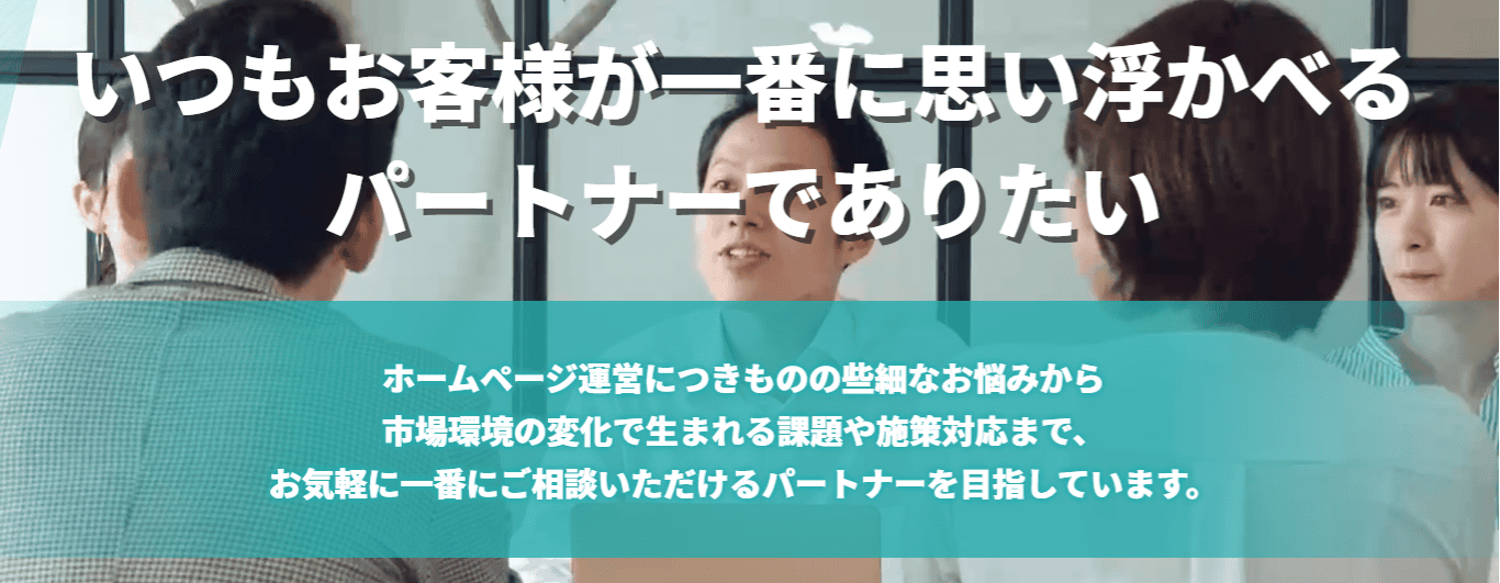 売上につながるWebマーケティング効果を最優先に考えた施策ができます。お問い合わせページからの問い合わせを増やすなど、コンバージョンを意識したサイト設計・SEO対策・コンテンツのプランニングができるのが強みです。