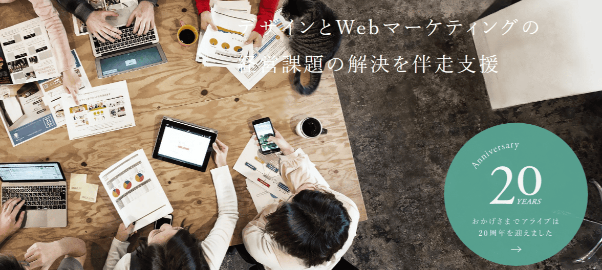 アライブは、Webマーケティングとデザインに強みをもつWeb制作会社です。クライアントの売上に貢献できるデザインを目標に実績を積み上げてきました。