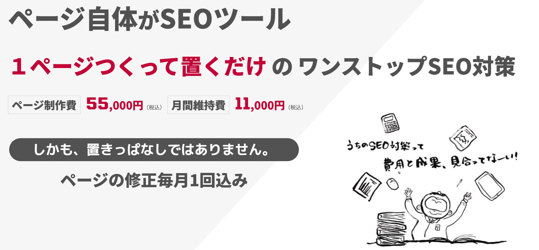 制作費用と月額費用以外は料金がかからず、契約期間の縛りもありません。WEBでの集客が弱いと感じたら試しに検討してみるのも良いでしょう。