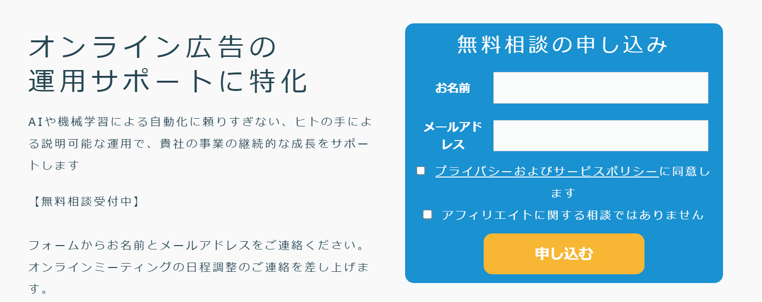 | リスティング以外のサービス | 広告代理店向けサービス・広告運用トレーニングなど |