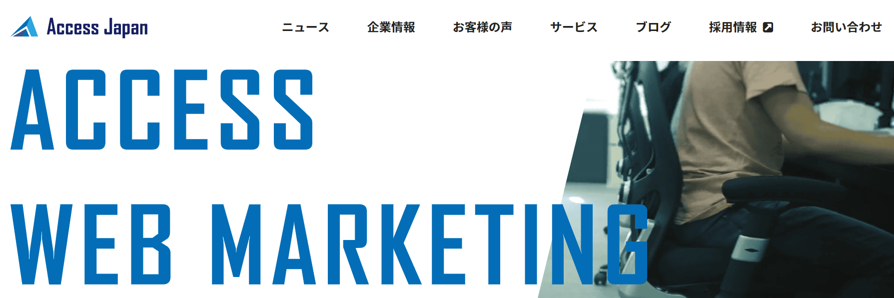アクセスジャパンは、SEOによる集客をメイン事業とした会社です。SEO対策の他には中古ドメイン販売やリスティング広告も手掛けています。