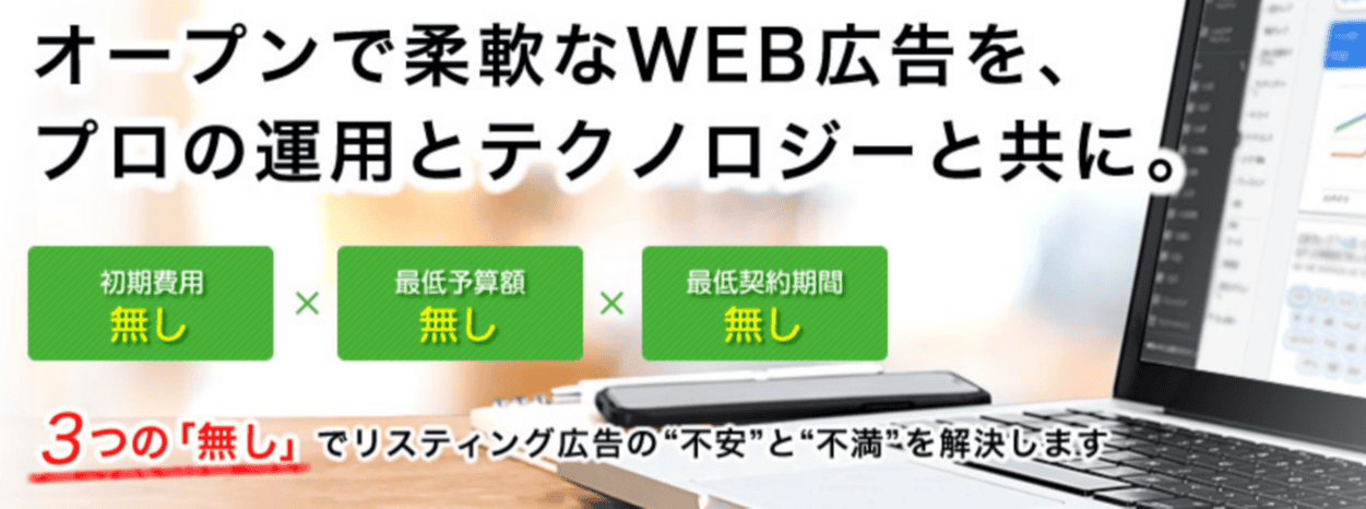 - 初期費用・最低予算額・最低契約期間なしで気軽にはじめられるリスティング広告