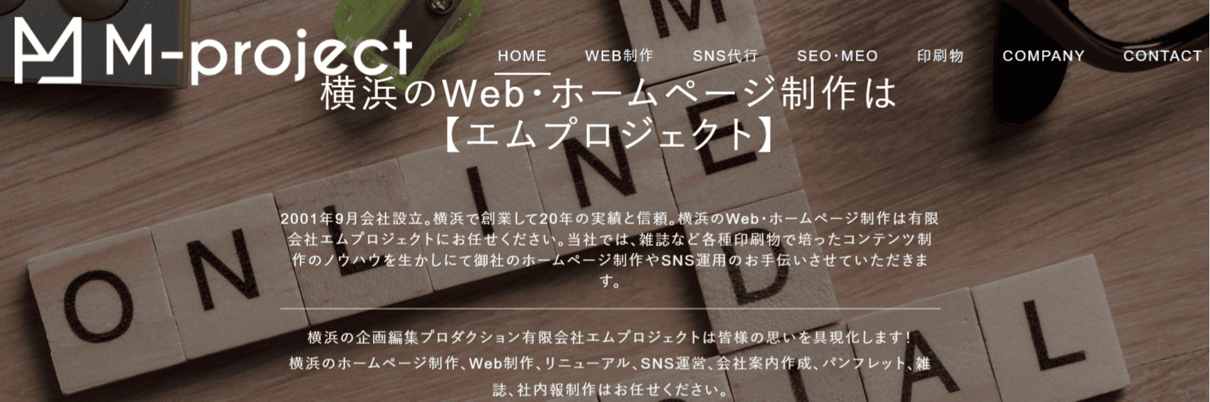 有限会社エムプロジェクトは、2001年創業の横浜で実績のあるWeb制作会社です。雑誌や印刷物などのコンテンツ制作で得たノウハウをもとに、SNS運用代行サービスを展開しています。