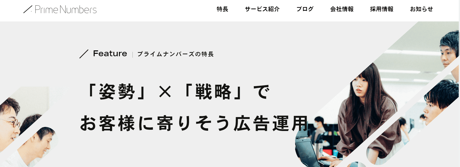 プライムナンバーズは東京に拠点を構える、リスティング広告代理店です。 同社は、持続的成長をテーマとして、これまでに数々の実績を積み上げてきました。 そんなプライムナンバーズの他社優位性は、「戦略」と「姿勢」の2つの要素です。 戦略 リスティング広告を取り巻く時代環境は、常に変化をし続けています。