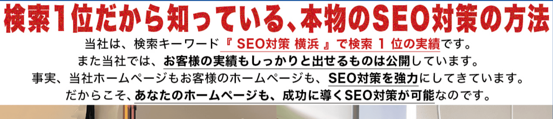 - 他社にはないSEOノウハウで上位表示を多数獲得