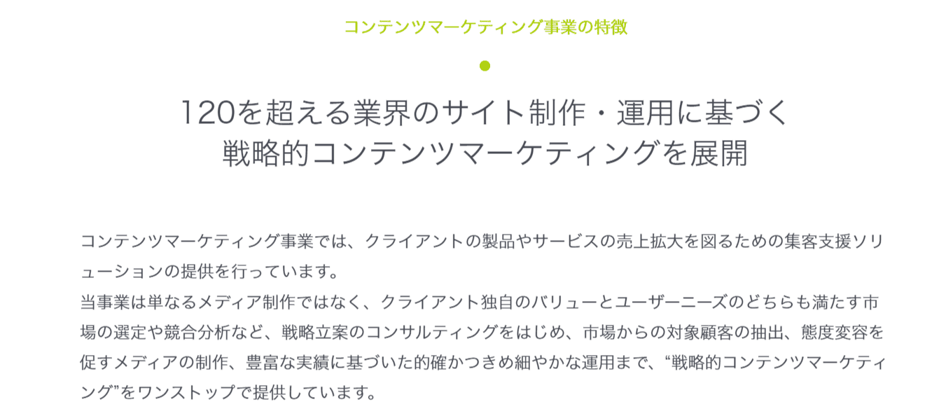 - 120を超える業種でのサイト制作や運用実績を基盤とした戦略的なコンテンツマーケティングが強み