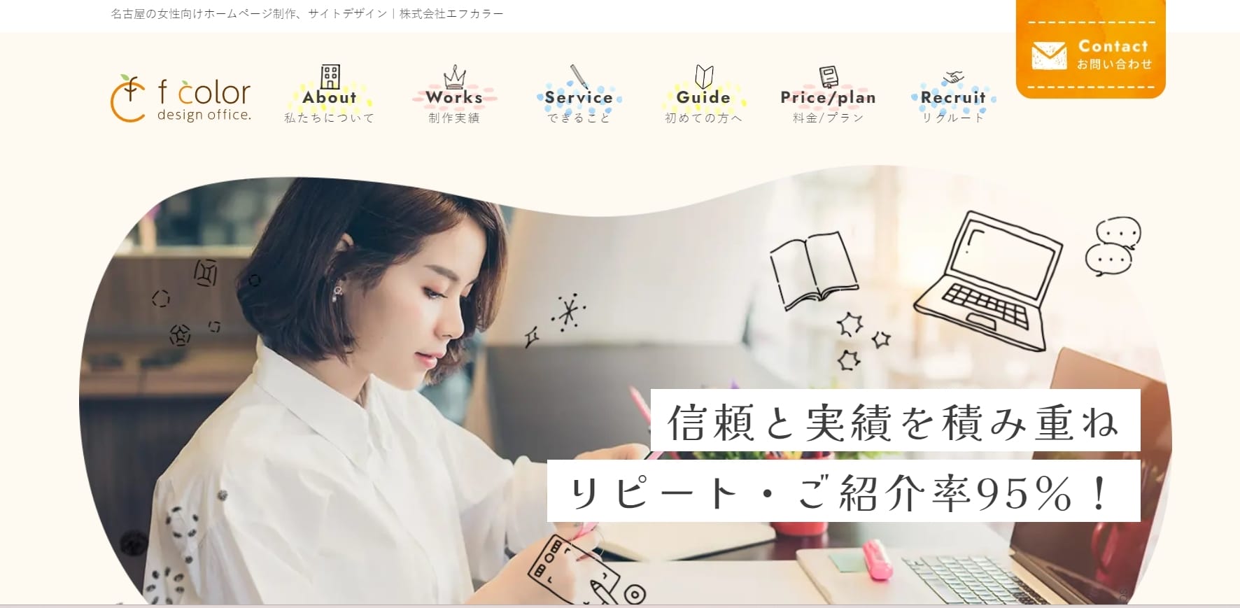 株式会社エフカラーは、女性クリエイターのみで構成された、女性をターゲットにした企画提案に強みを持つ制作会社です。女性の視点からターゲット層のニーズを的確に捉え、女性に響く魅力的なホームページデザインを提案します。