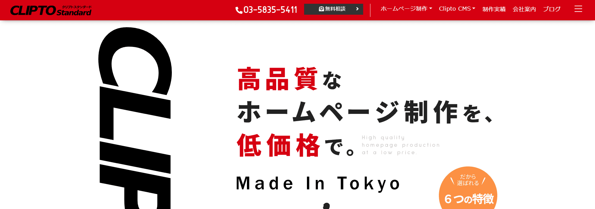 特徴 | ・初期費用10万円から制作が可能 ・飲食店や美容業界、BtoB企業など制作実績は多岐にわたる納品スピードが 速く、ヒアリングから公開まで最短1カ月 |