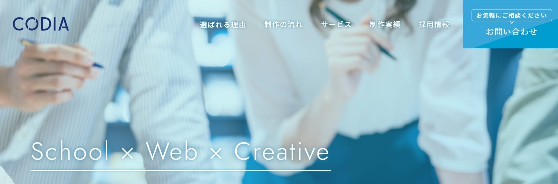 コーディア株式会社は150以上の学校サイトを運用しており、学校説明会につなげるホームページ制作が可能です。生徒や保護者目線で使いやすいホームページや学校の特色をイメージしやすいデザインを提案します。